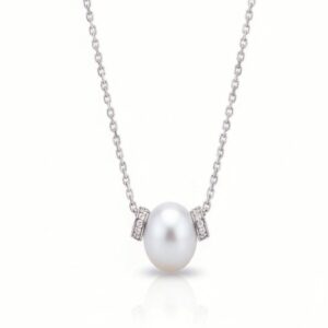 CLASSIC NATURAL PEARL WITH DIAMOND IN 18K WHITE GOLD NECKLACE