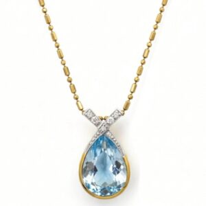 CLASSIC PEAR NATURAL BLUE TOPAZ WITH DIAMOND IN 18K GOLD NECKLACE