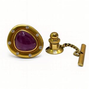 NATURAL RUBY WITH DIAMOND IN 18K GOLD CUFFLINK