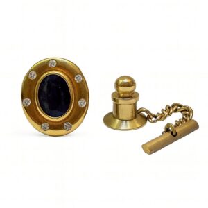 NATURAL BLUE SAPPHIRE WITH DIAMOND IN 18K GOLD CUFFLINK