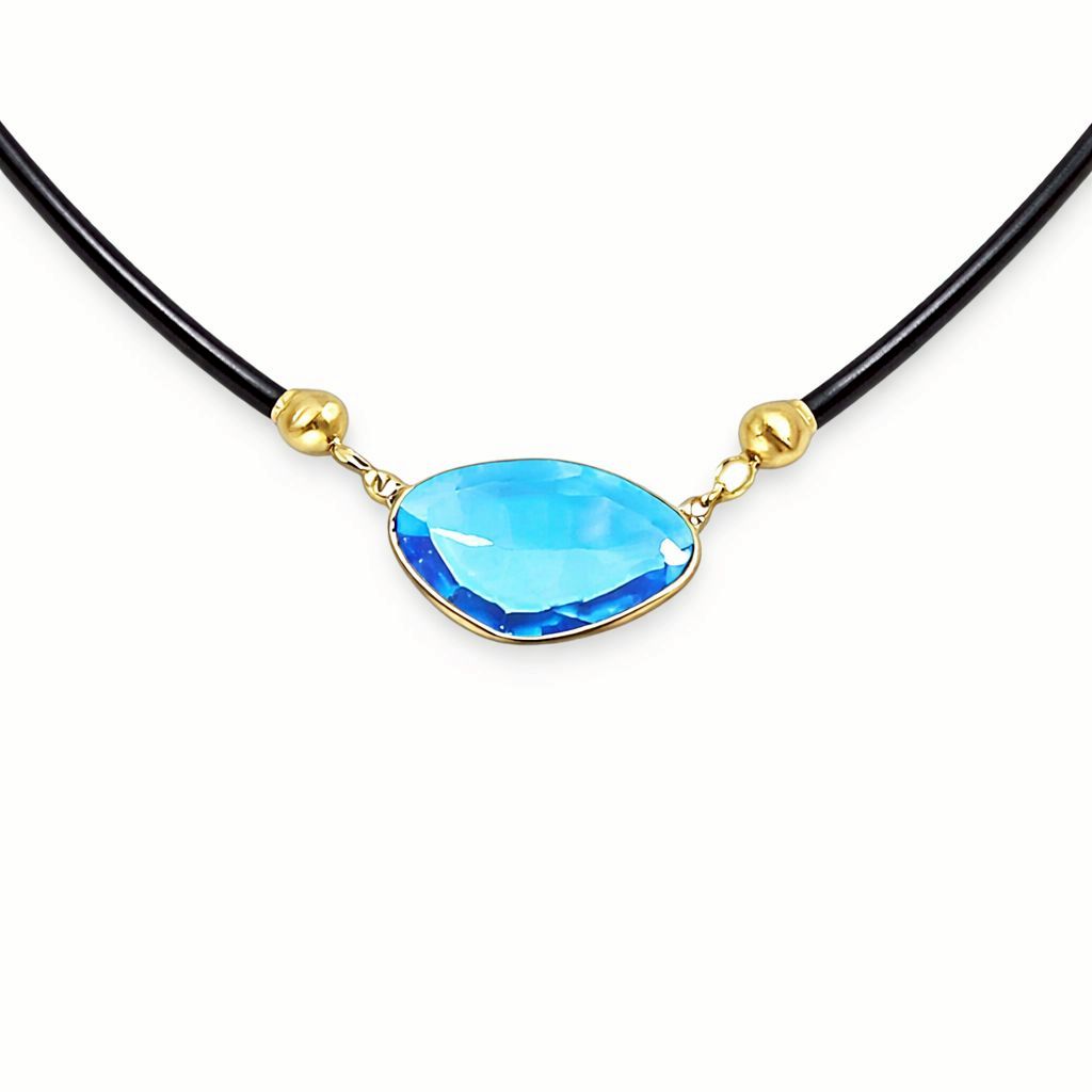 CLASSIC NATURALBLUE LONDON TOPAZ IN 18K GOLD NECKLACE