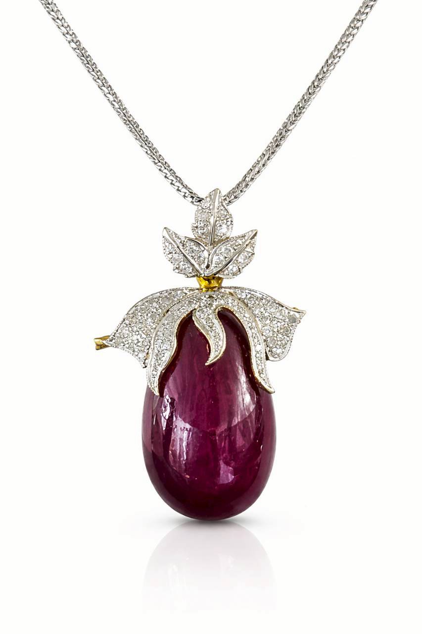 FLOWER NATURAL RUBY WITH DIAMOND IN 18K GOLD NECKACE