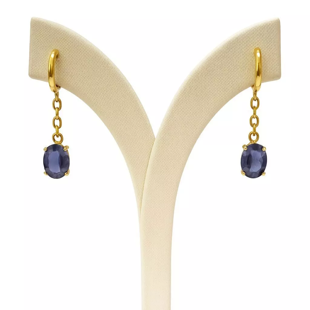 CLASSIC NATURAL IOLITE IN 18K GOLD DROP EARRINGS