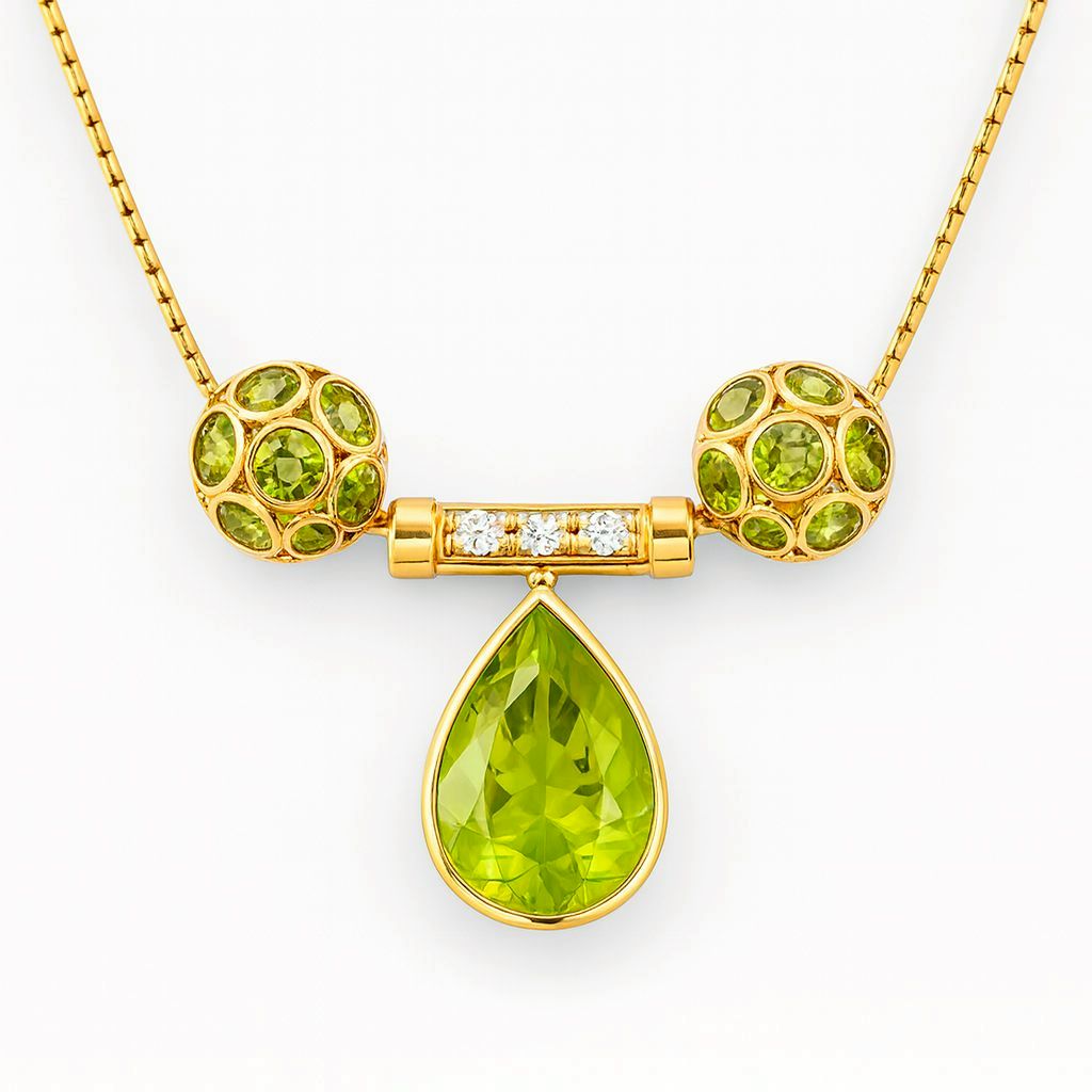 NATURAL PERIDOT WITH DIAMOND IN 18K GOLD NECKLACE