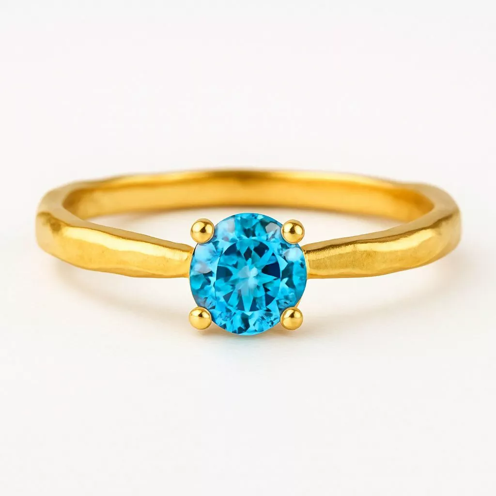CLASSIC ROUND NATURAL BLUE TOPAZ IN 18K GOLD RING